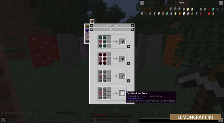 Мод на каменные двери Blocky Stone Doors добавит в игру 28 новых вариантов потайных дверей, текстуры которых будут повторять текстуры ванильных блоков. Плюсом данного мода является то, что он совместим с ресурспаками.